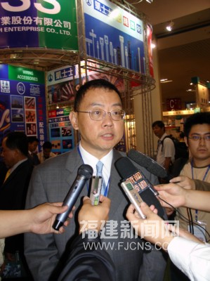 四月八日,作为厦门“台交会”主办方之一的台湾区电机电子工业同业公会理事长焦佑钧在展馆内接受记者采访时表示,该公会二00一年开始加盟台交会,致力于台交会两岸交流平台的建设;台交会规模不断扩大,功能日益完善,水平逐年提高,已具有品牌优势。当日,海峡两岸之间规模最大的经贸盛会、第十二届厦门“台交会”在厦门登场。(记者 杨伏山 摄)