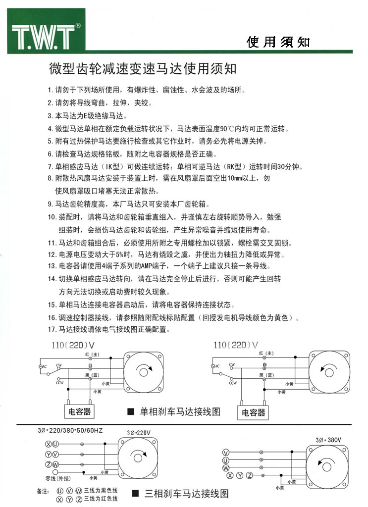 微型齿轮减速变速马达使用须知