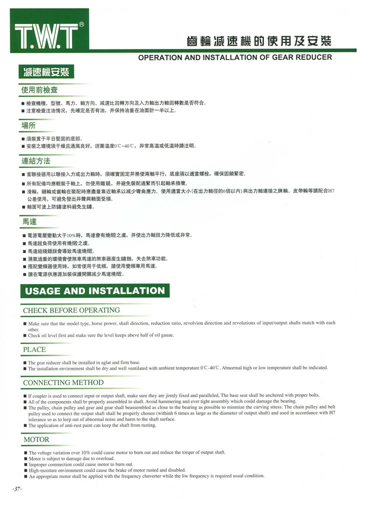齿轮减速机的使用及安装
